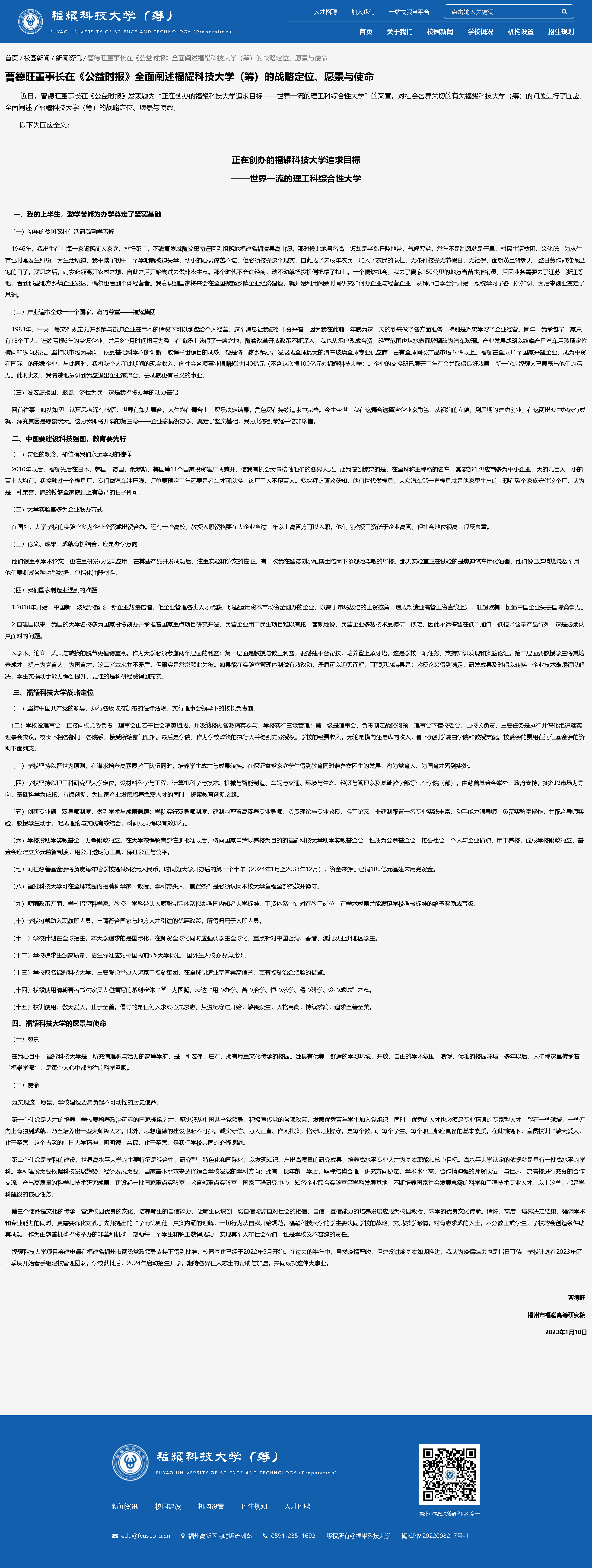8月9日,福耀科技大学(筹)第一届理事会第一次会议召开,曹德旺参加并主持会议。会议审议研究了《理事会章程》、《理事会议事规则》、《大学章程及办学方针》、《大学2023年8-12月份工作计划》等9项重要议题,并决定聘请中国科学院梅宏院士为福州市福耀高等研究院/福耀科技大学(筹)校长。