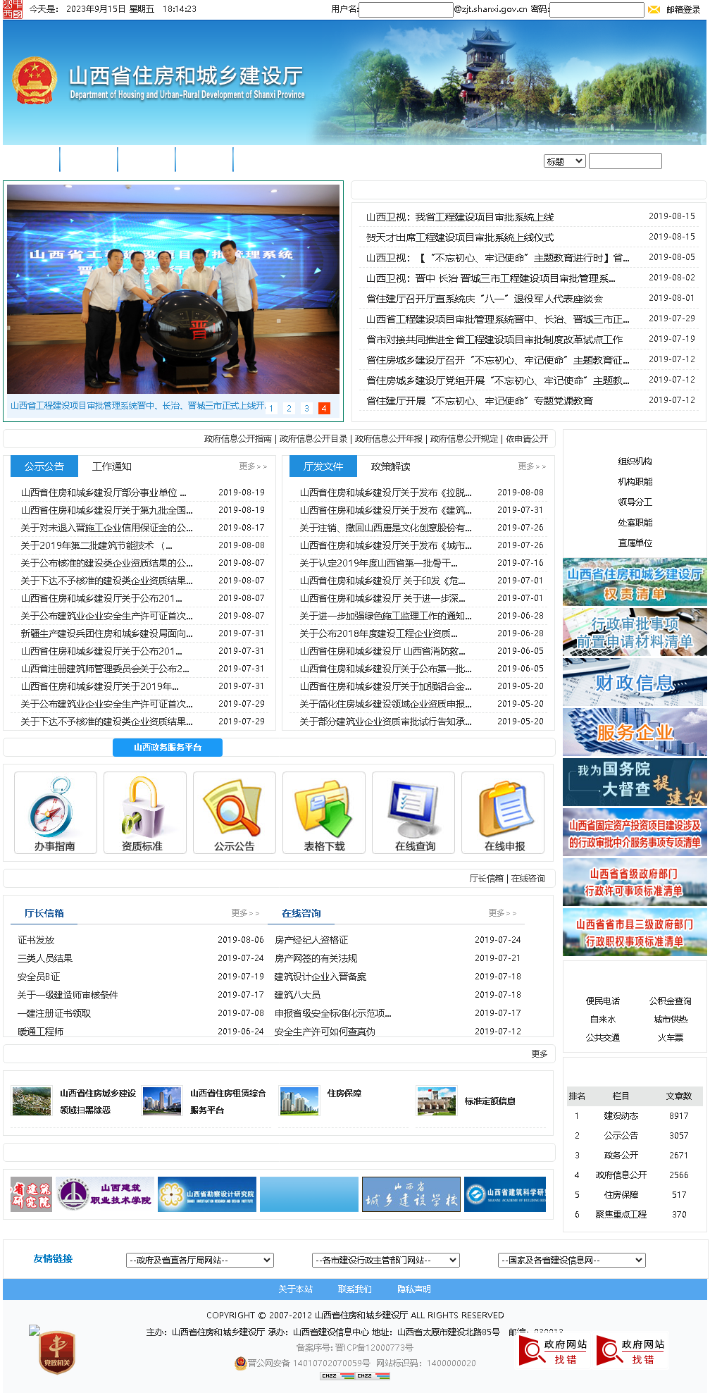山西省住房和城乡建设厅网站升级改版试运行公告