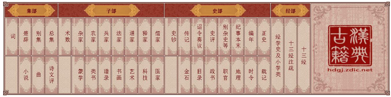 史部 子部 集部 诗部 儒部 易部 艺部 医部 丛部 佛部 道部