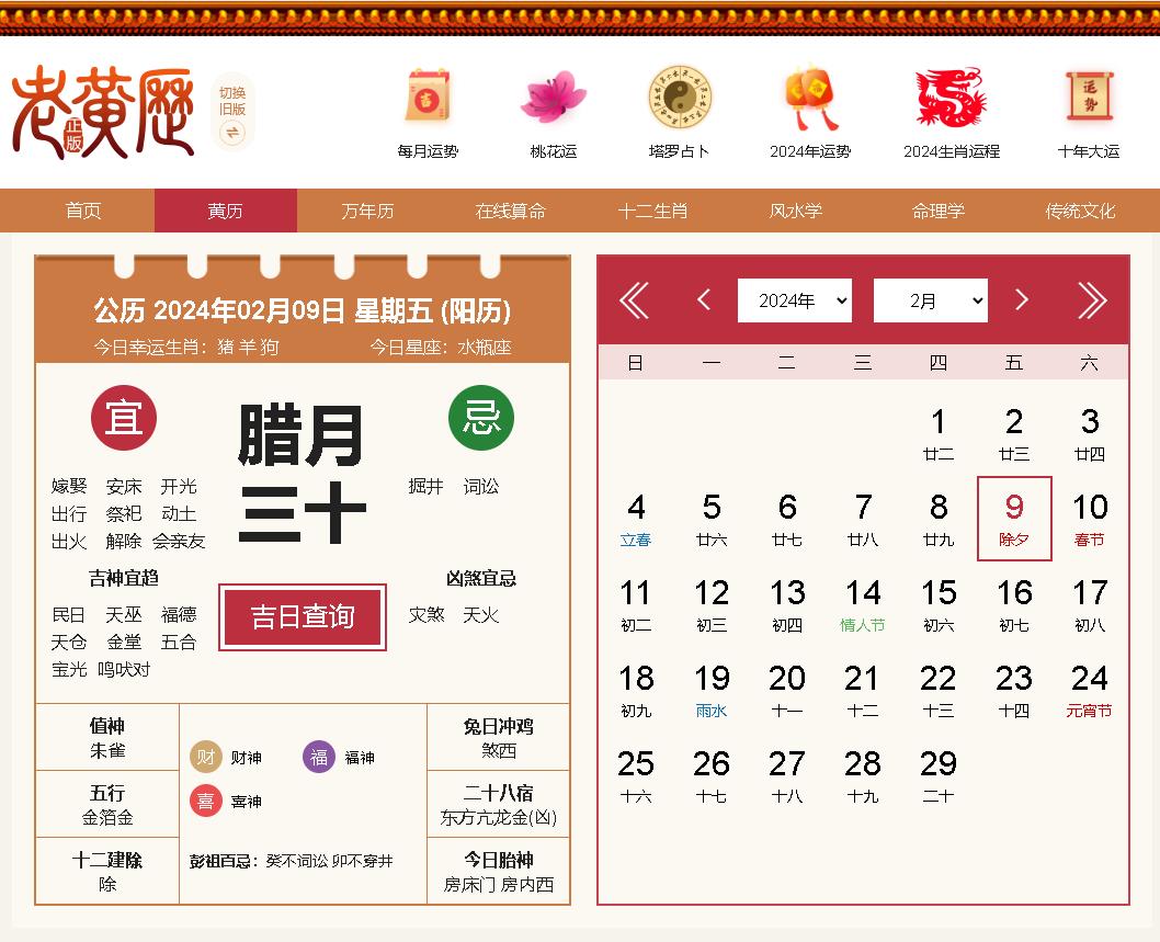 以农历癸卯兔年的农历十一月和腊月为例,农历十一月初一(公历2023年12月13日)到腊月初一(公历2024年1月11日)之间为29天;腊月初一至农历甲辰龙年的正月初一(公历2024年2月10日)之间为30天。