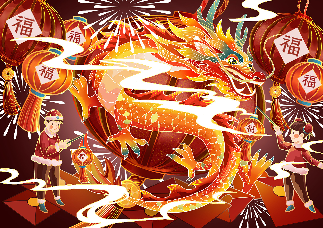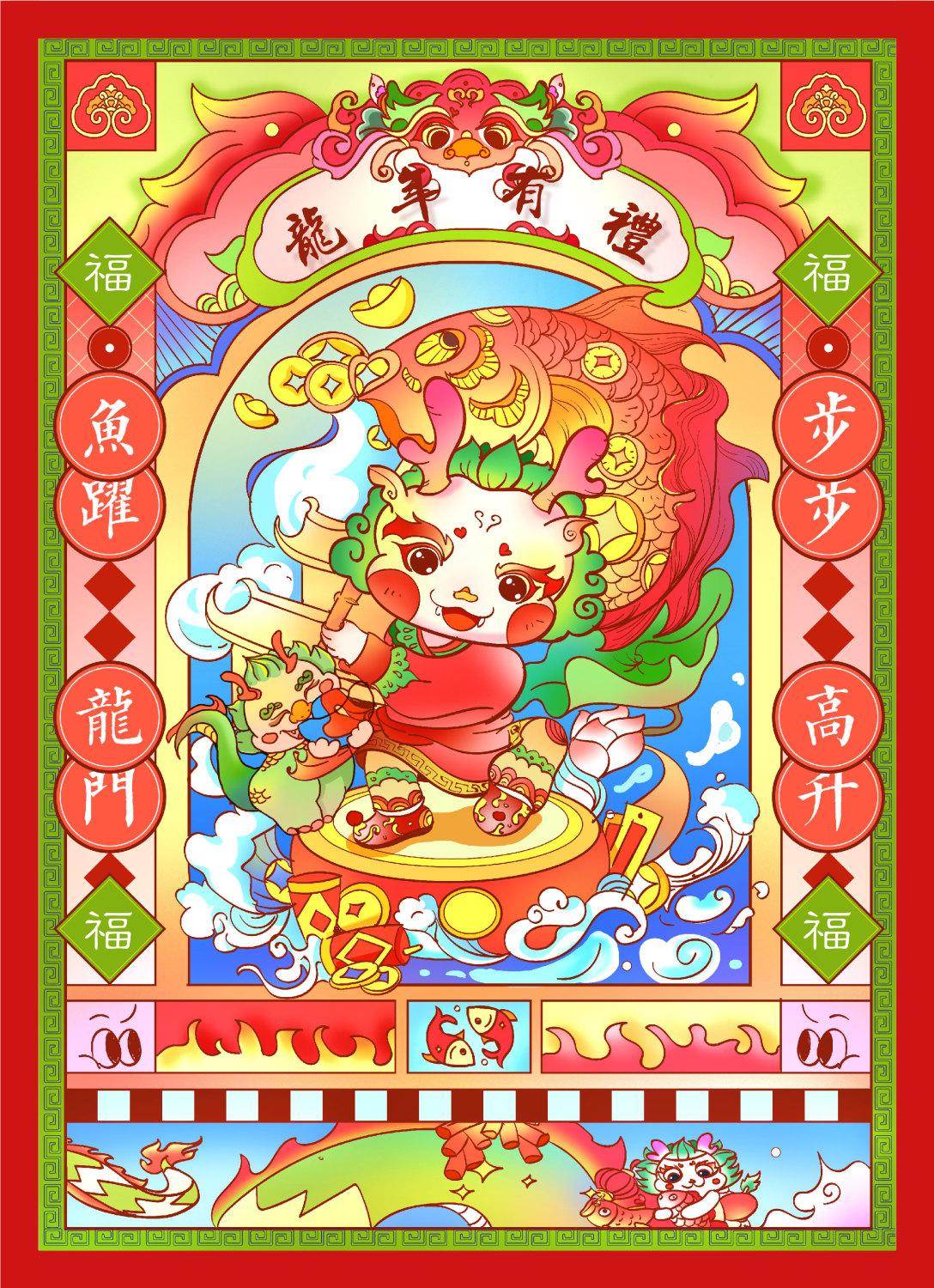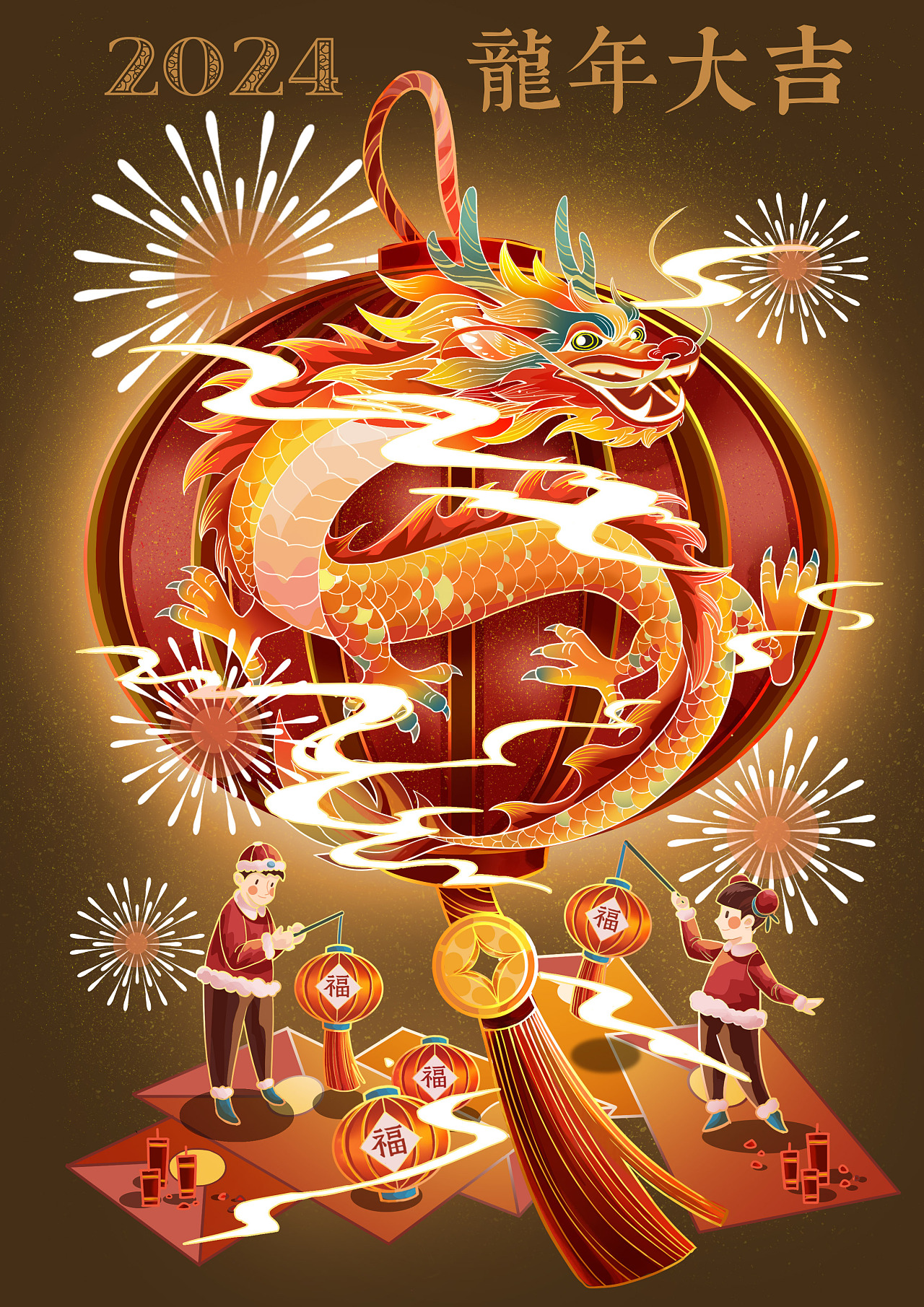 感悟上天恩 五龙降祥瑞 瑞雪兆丰年 甲辰好运来