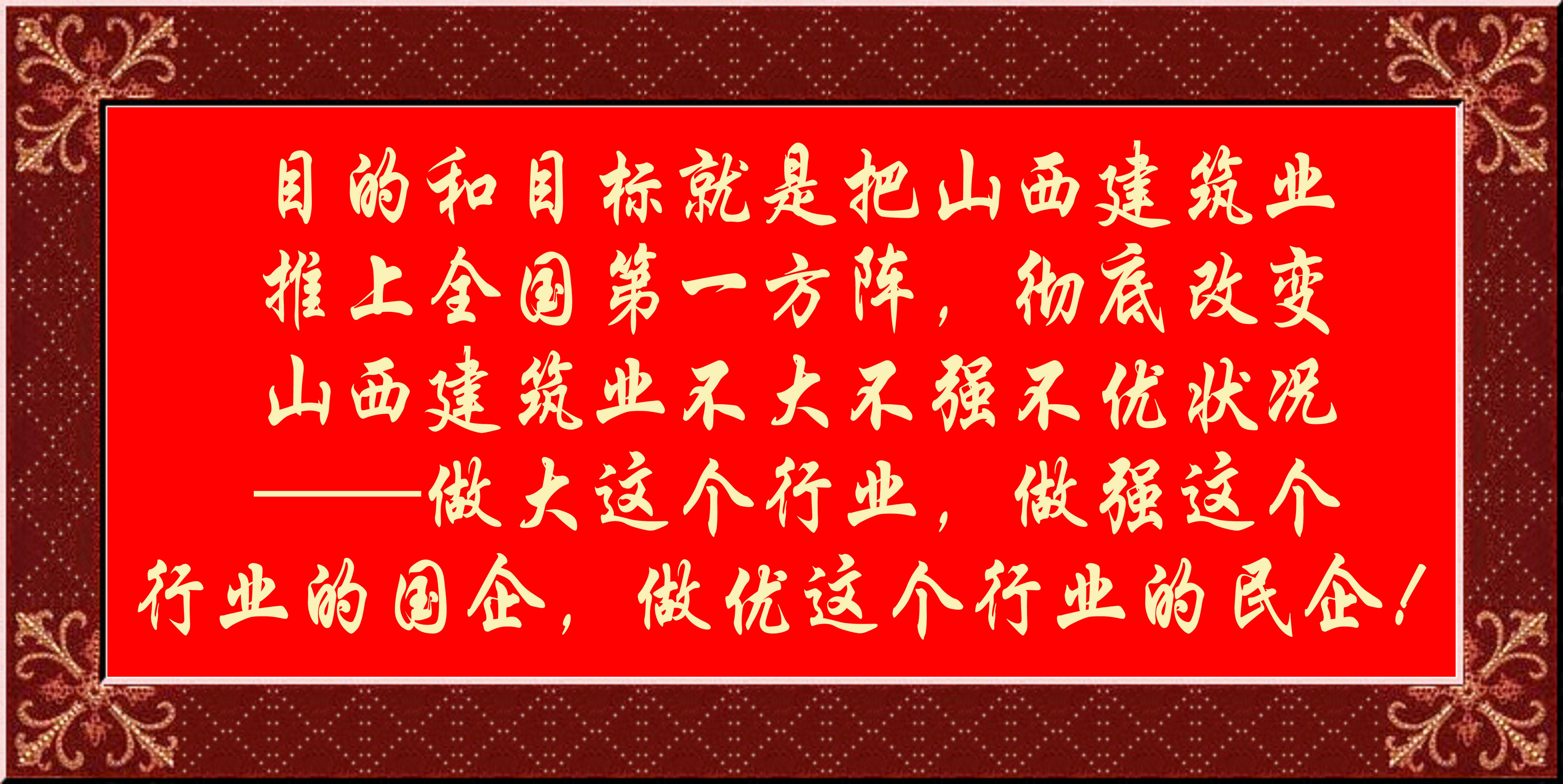这是一个大胆的规划,涉及体制机制如何适应大格局和大空间的再造,需要全社会的理解与支持,目的和目标就是把山西建筑业推上全国第一方阵,彻底改变山西建筑业不大不强不优状况——做大这个行业,做强这个行业的国企,做优这个行业的民企!