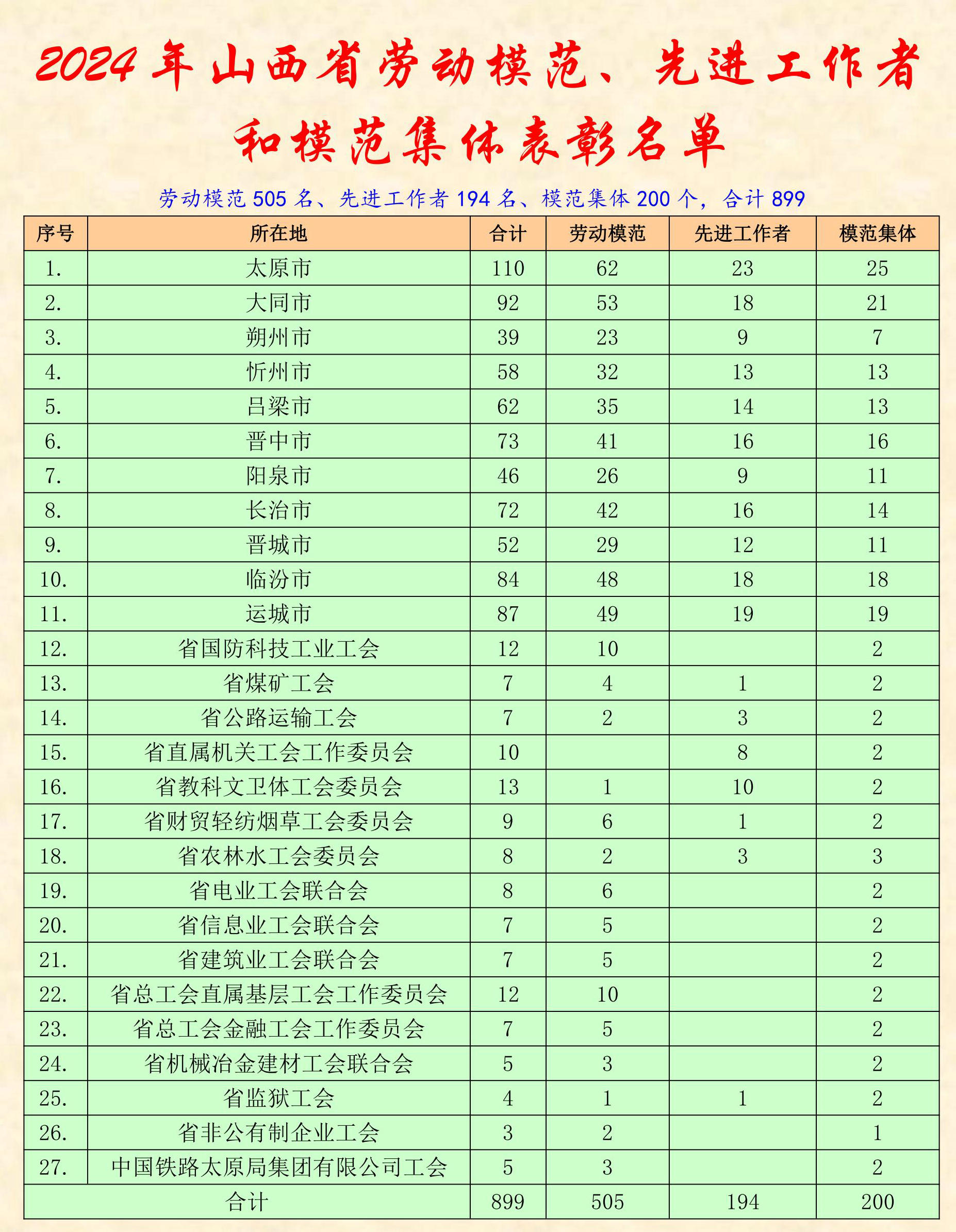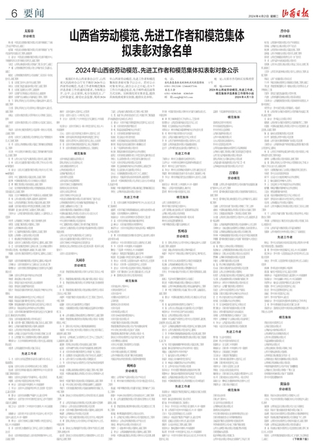 2024年山西省劳动模范、先进工作者和模范集体拟表彰对象公示