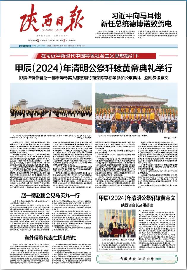 岁次甲辰,节届清明。桥山毓秀,沮水钟灵。祥风惠畅,万物滋荣。谨具鲜花雅乐之仪,恭祭轩辕黄帝。辞曰: