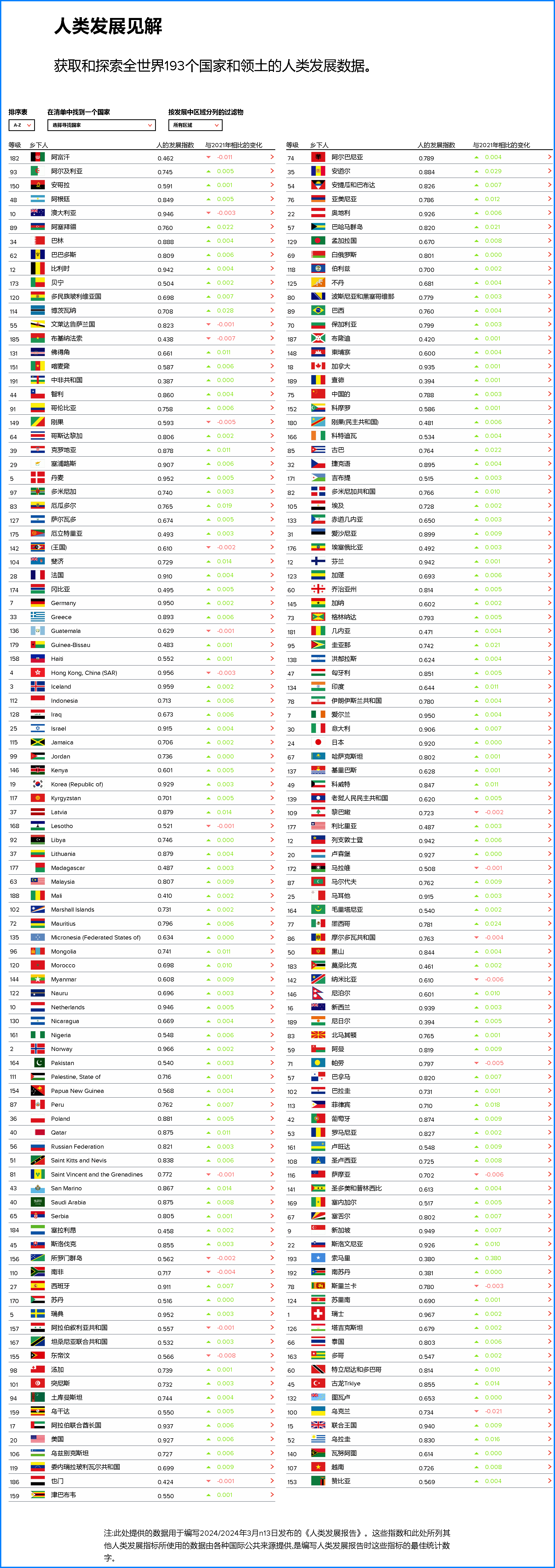 等级 国家或地区 人的发展指数 与2021年相比的变化