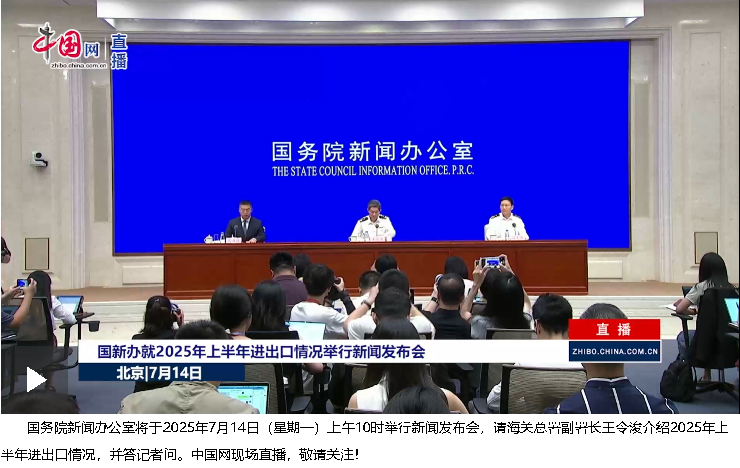 女士们、先生们,大家上午好!欢迎出席国务院新闻办新闻发布会。今天我们进行经济数据例行发布,我们邀请到海关总署副署长王令浚先生,请他向大家介绍2025年上半年进出口情况,并回答大家关心的问题。出席今天发布会的还有:海关总署新闻发言人、统计分析司司长吕大良先生。