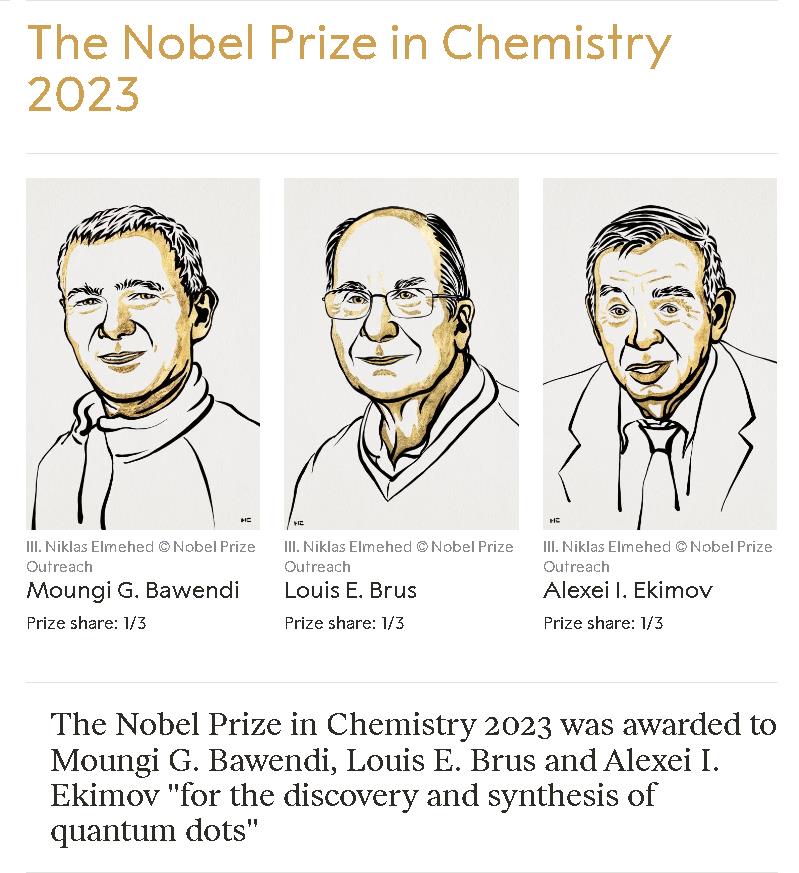 新华社斯德哥尔摩10月4日电(记者和苗 付一鸣)瑞典皇家科学院4日宣布,将2023年诺贝尔化学奖授予三名科学家蒙吉·巴文迪、路易斯·布鲁斯和阿列克谢·叶基莫夫,以表彰他们在发现和合成量子点方面所作出的贡献。