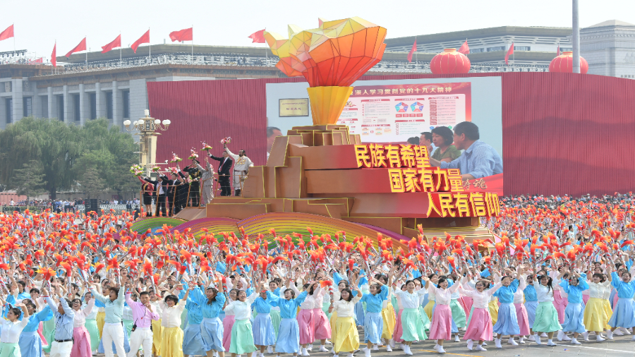 篇篇贺词,团结是“大江南北披上红色盛装,人们脸上洋溢着自豪的笑容,《我和我的祖国》在大街小巷传唱”;是“逆行出征的豪迈”“顽强不屈的坚守”“患难与共的担当”“英勇无畏的牺牲”“守望相助的感动”;是“广大军民不畏艰险,同心协力抗洪救灾”……