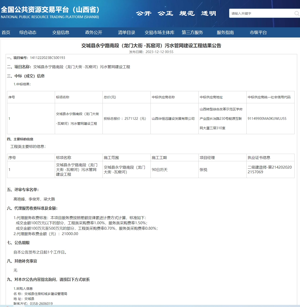 交城县永宁路南段(龙门大街 -瓦窑河)污水管网建设工程