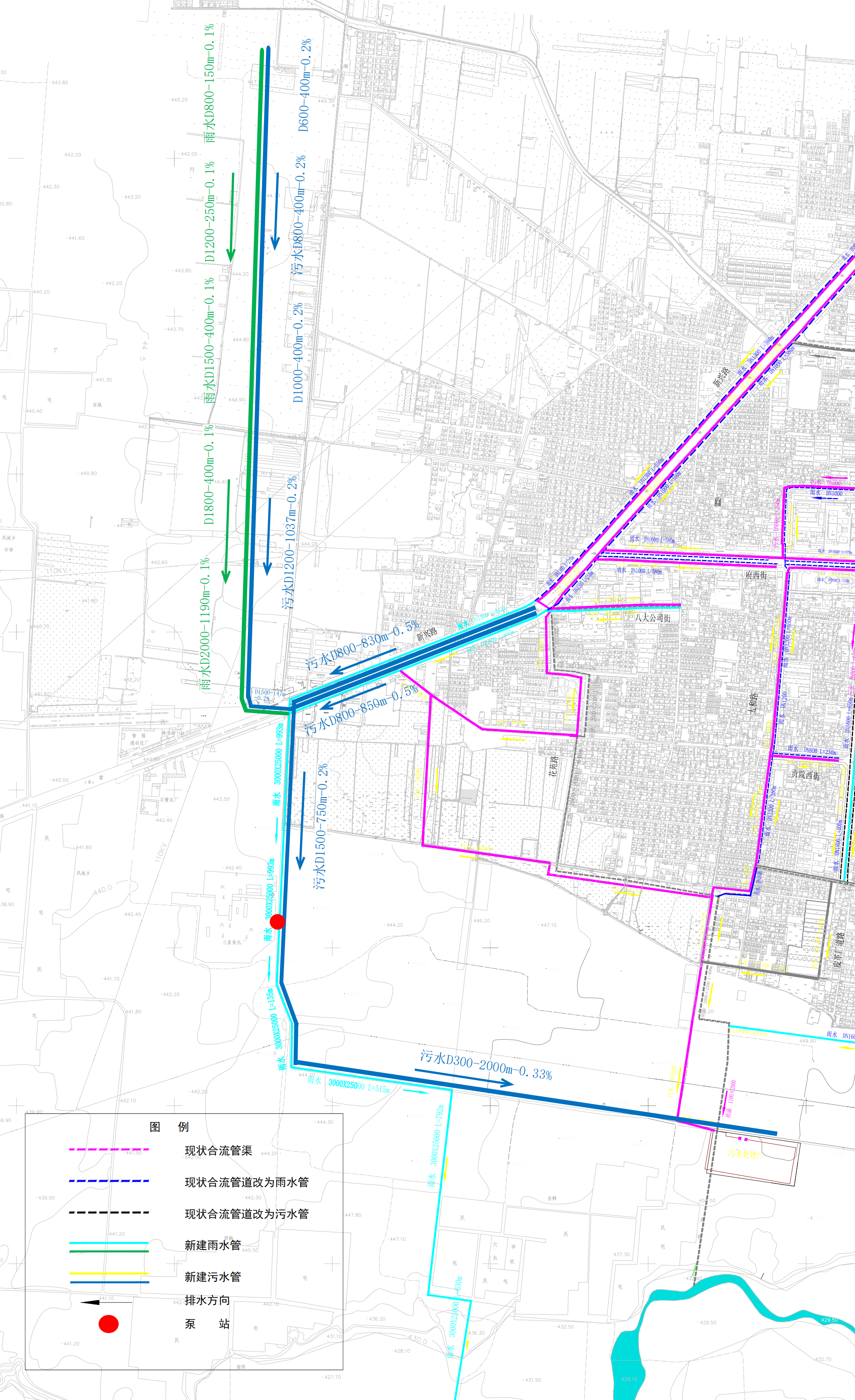 曲沃县西城区排水主管网走向图