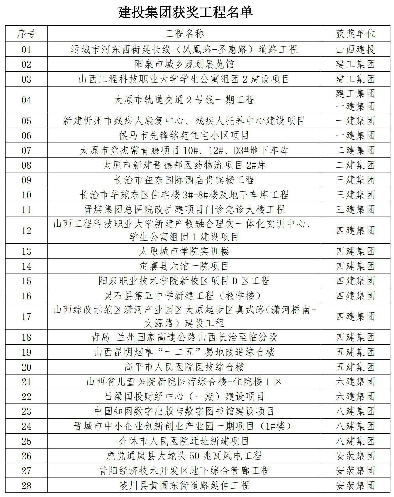 山西建投集团承建的28项工程荣获首届山西省优质工程奖