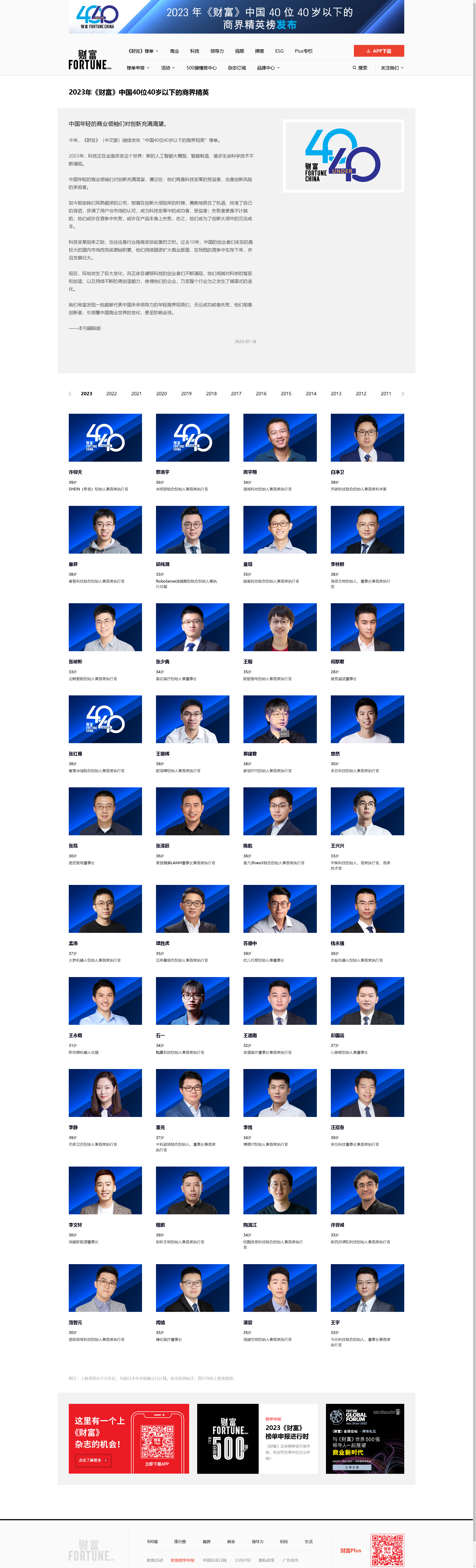 今年,《财富》(中文版)继续发布“中国40位40岁以下的商界精英”榜单。