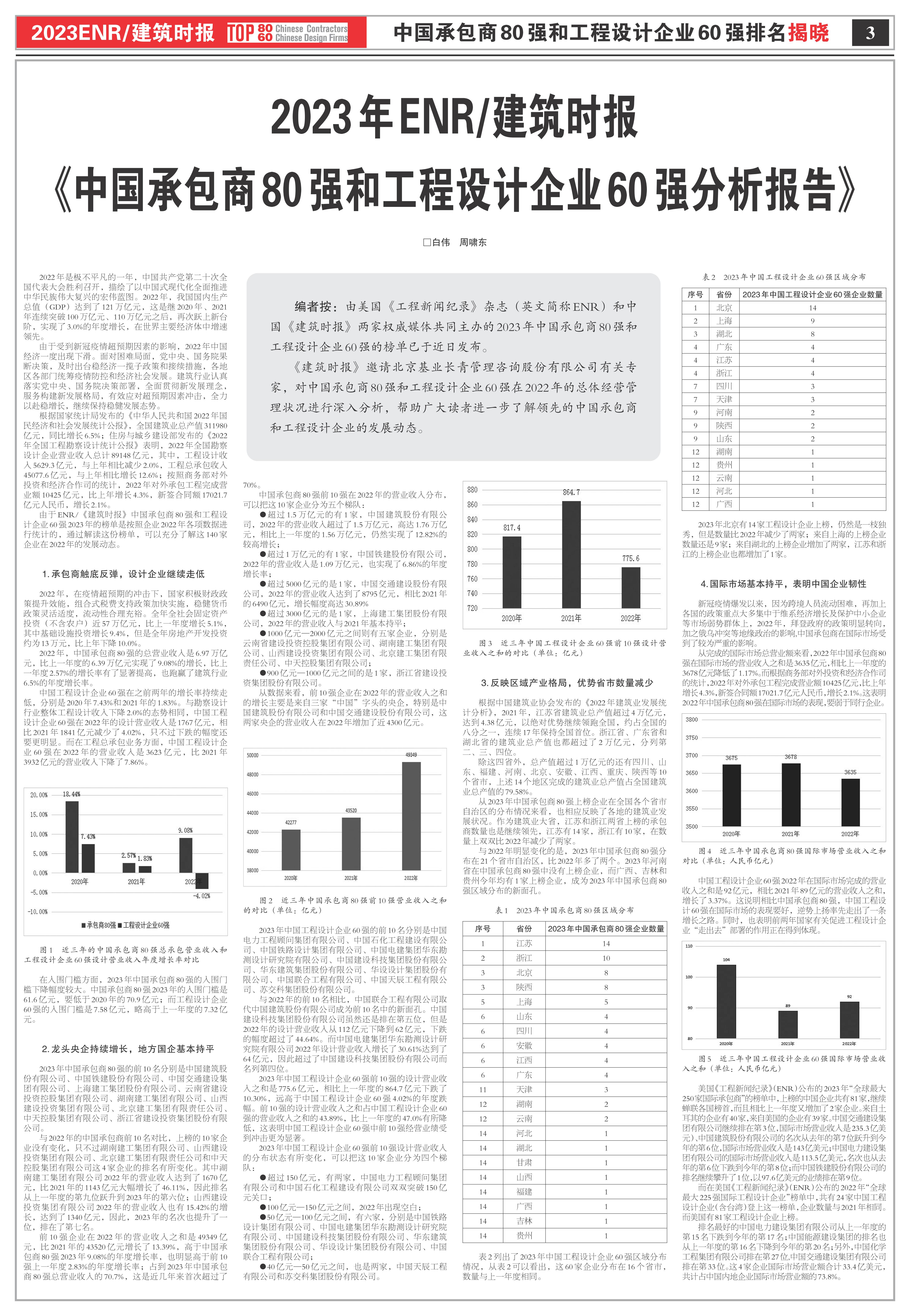 近日,《建筑时报》和美国《工程新闻记录》(ENR)共同发布2023ENR/建筑时报“中国承包商80强和工程设计企业60强”排名榜单。