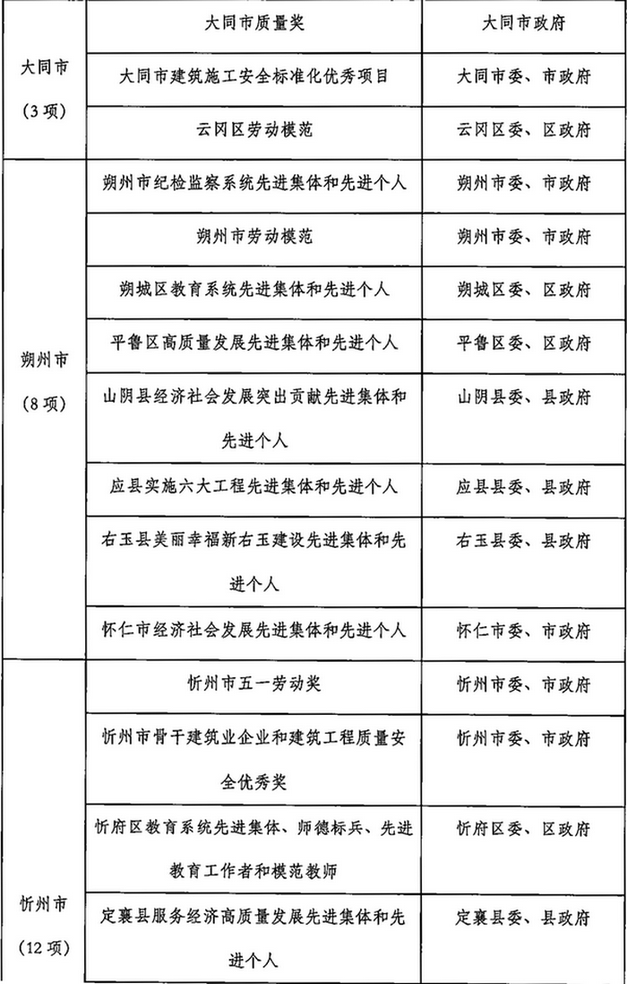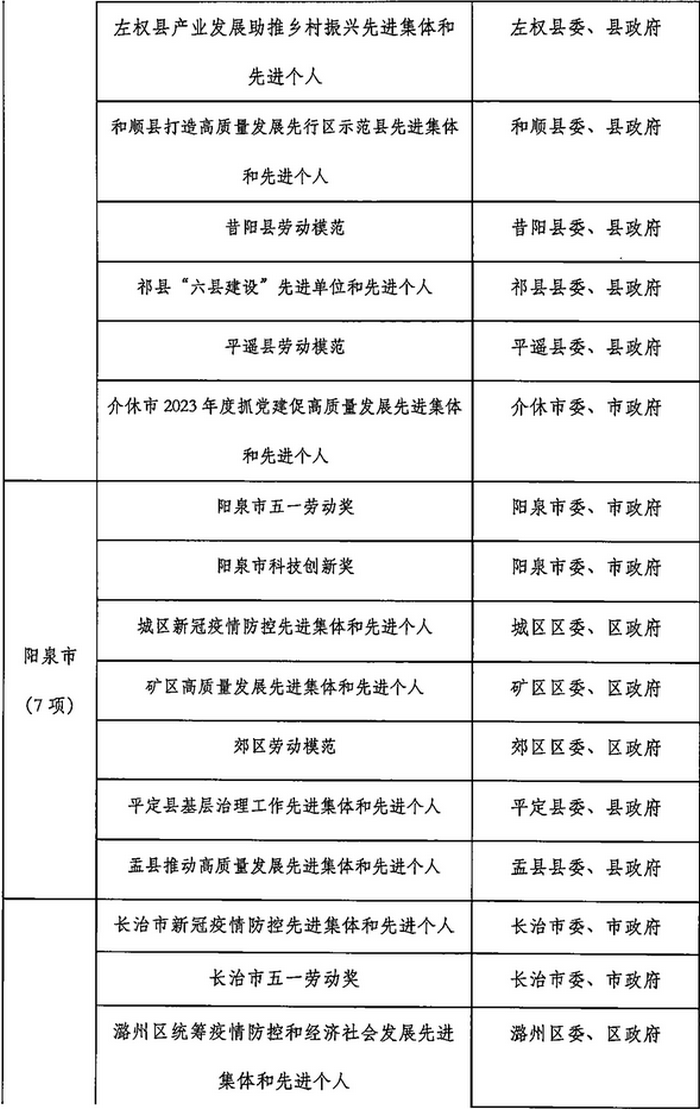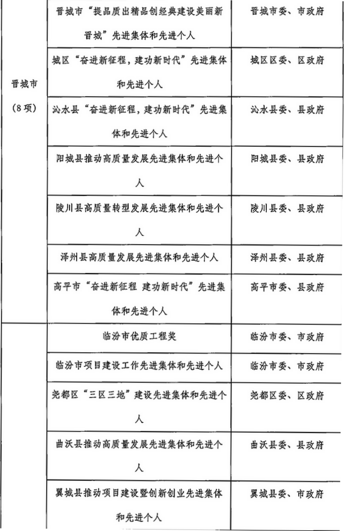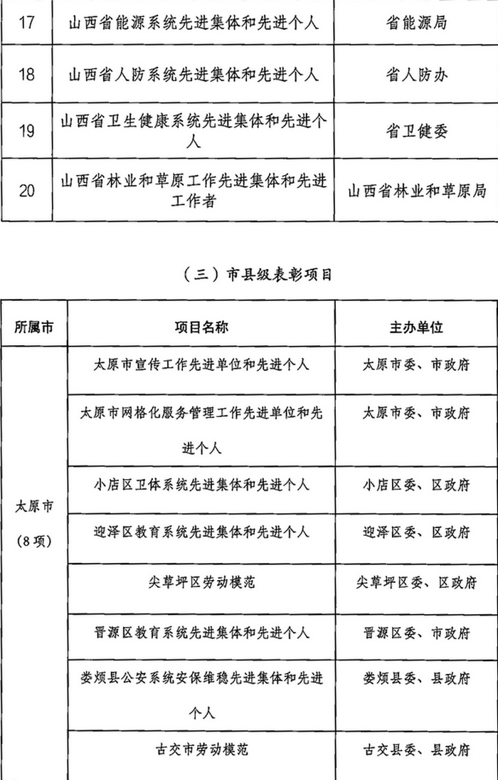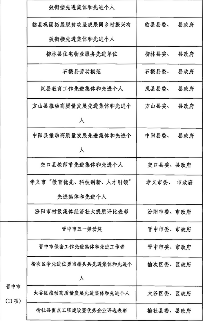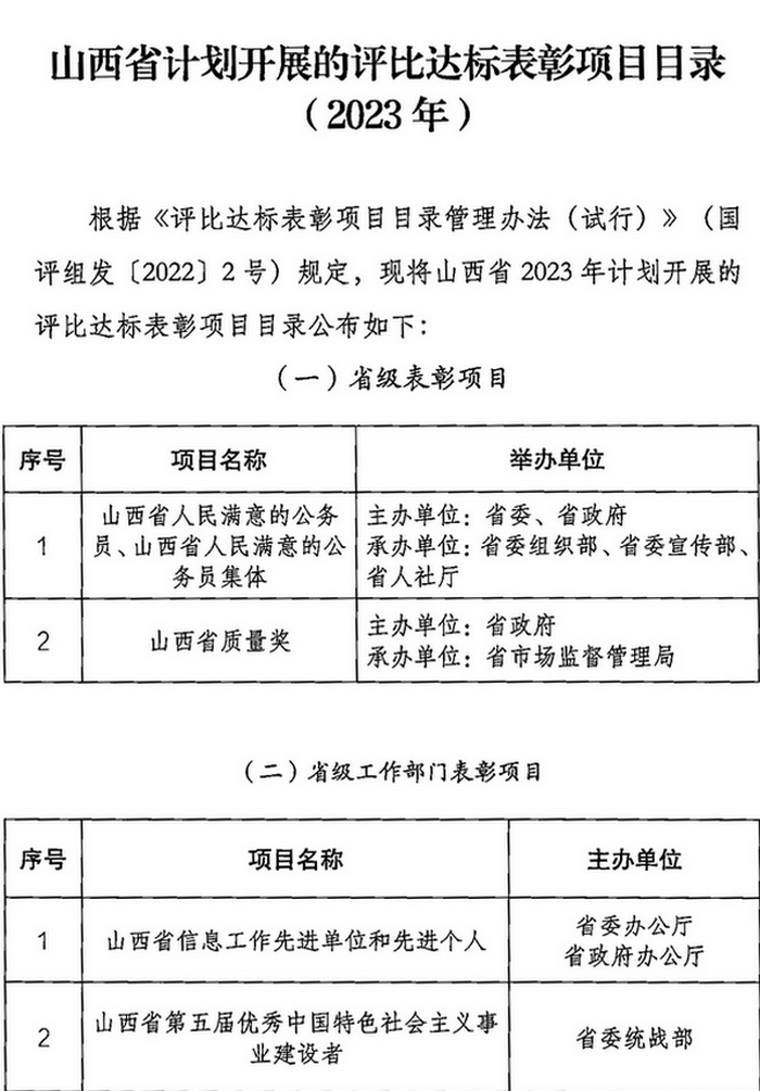 山西省2023年计划开展的评比达标表彰项目目录