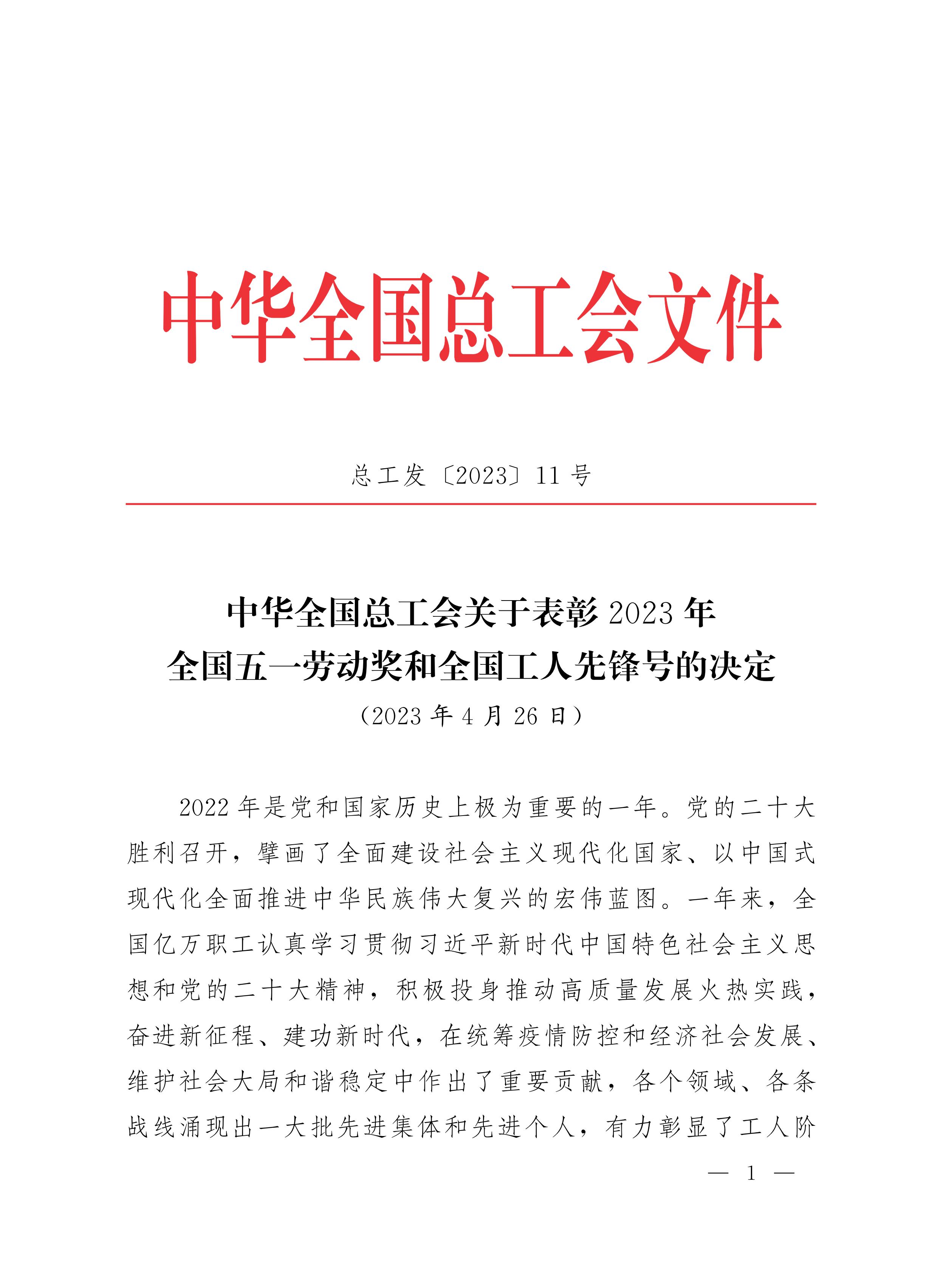 【行业资料】2023 年全国五一劳动奖和全国工人先锋号名单