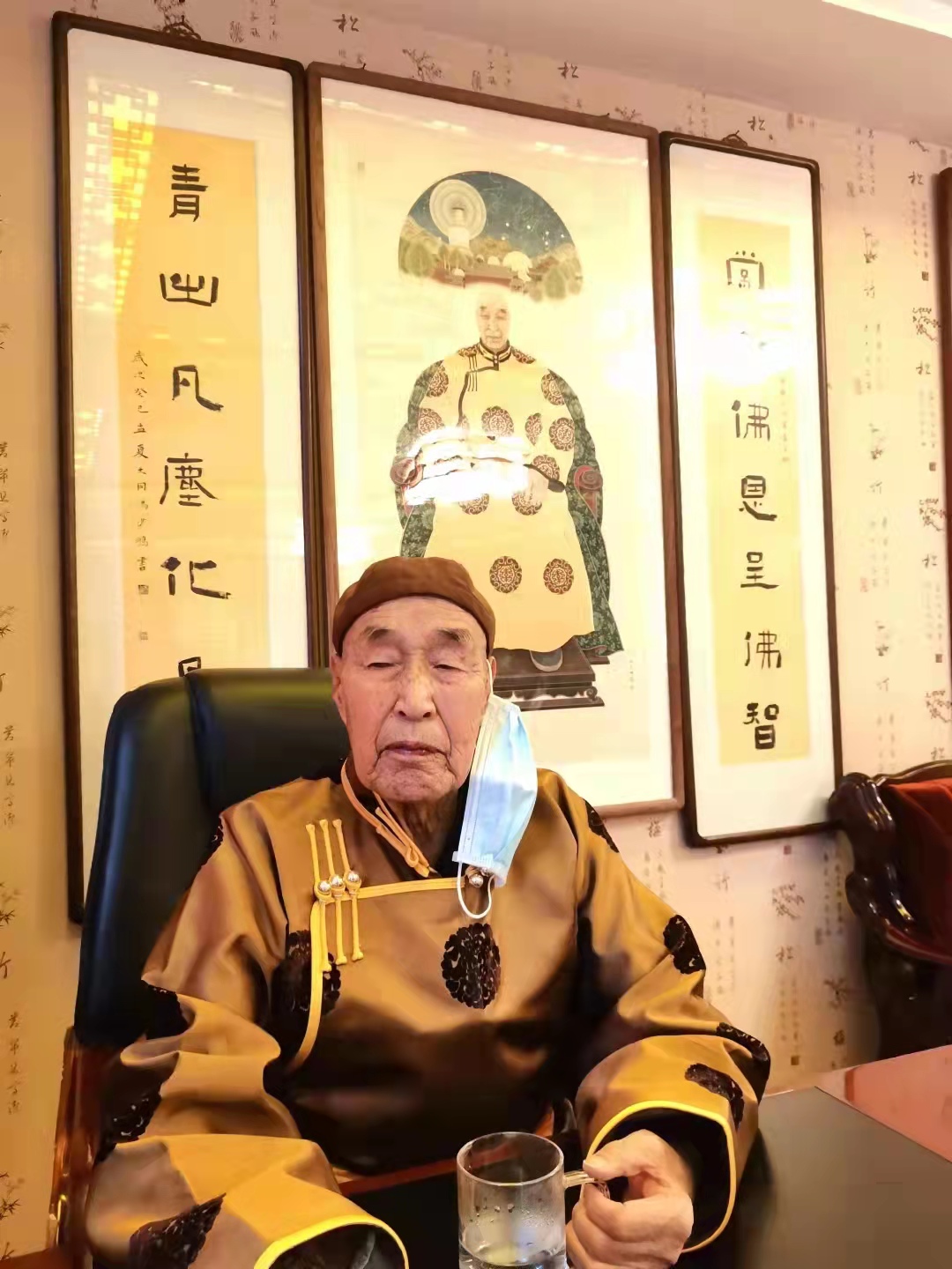 这是我的好兄弟于2021年9月23日专程赴五台山给常青法师祝贺九十大寿所