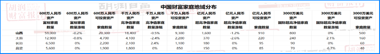 2月27日,胡润研究院发布《2024胡润财富报告》,揭示目前全国财富家庭的数量、地域分布和人群画像。该《报告》显示,太原市拥有千万元人民币资产的“高净值家庭”数量为4100户,拥有亿元人民币资产的“超高净值家庭”达370户。