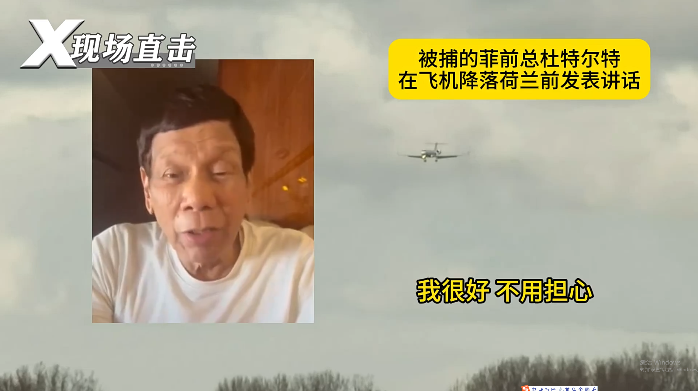 被捕的菲前总统杜特尔特在飞机降落荷兰前发表讲话