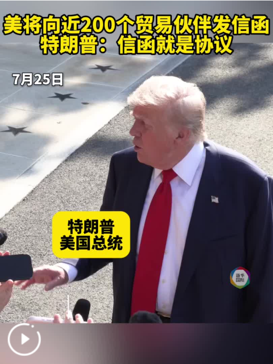 7月初,特朗普先后致信20多个国家领导人,称将从8月1日起对这些国家征收20%至50%不等的关税。他曾于16日表示,有意对超过150个美国次要贸易伙伴统一加征关税,税率可能在10%至15%,美方尚未就此作出决定。(记者:郭倩;视频:胡友松、张淼)