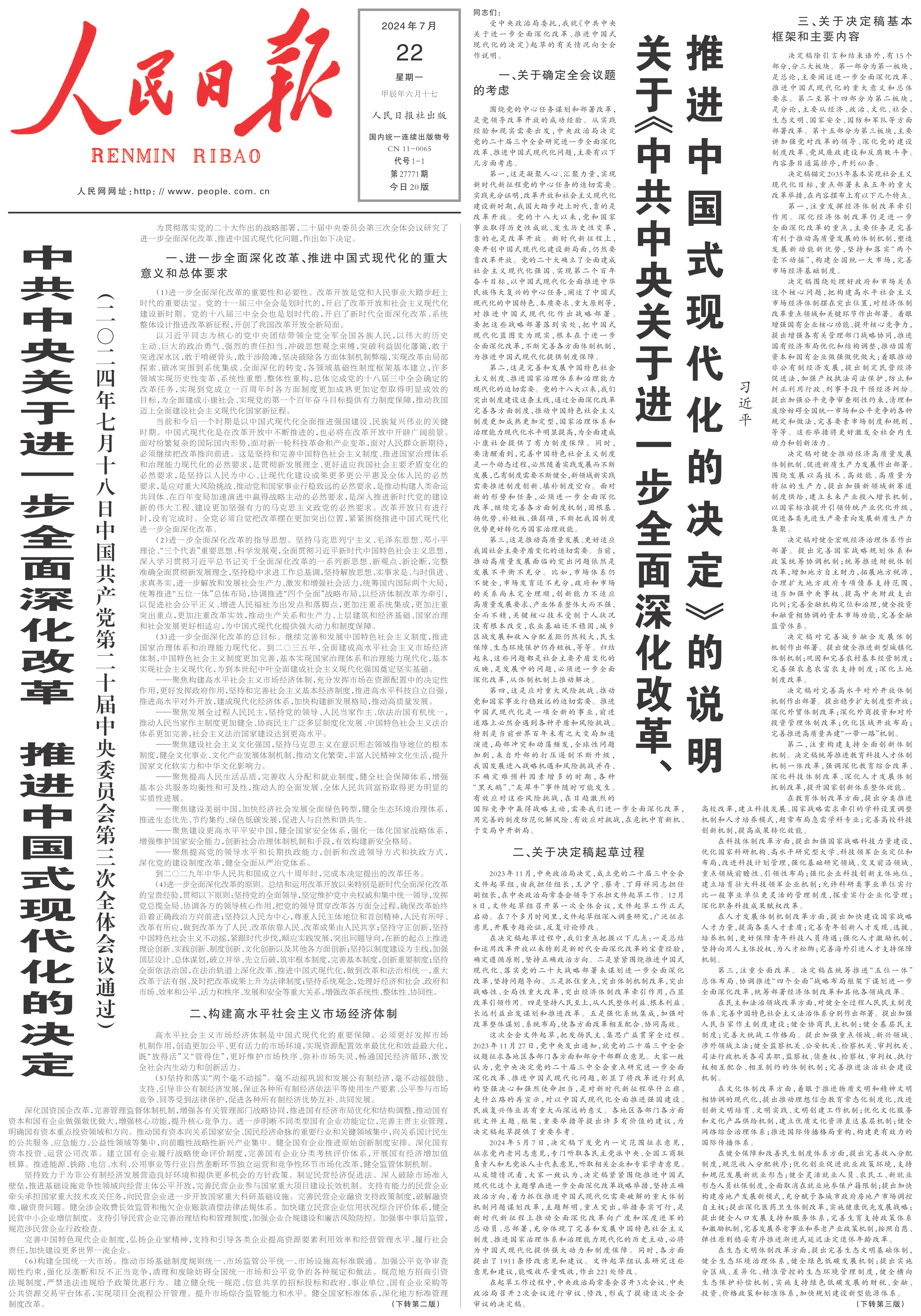中共中央关于进一步全面深化改革 推进中国式现代化的决定