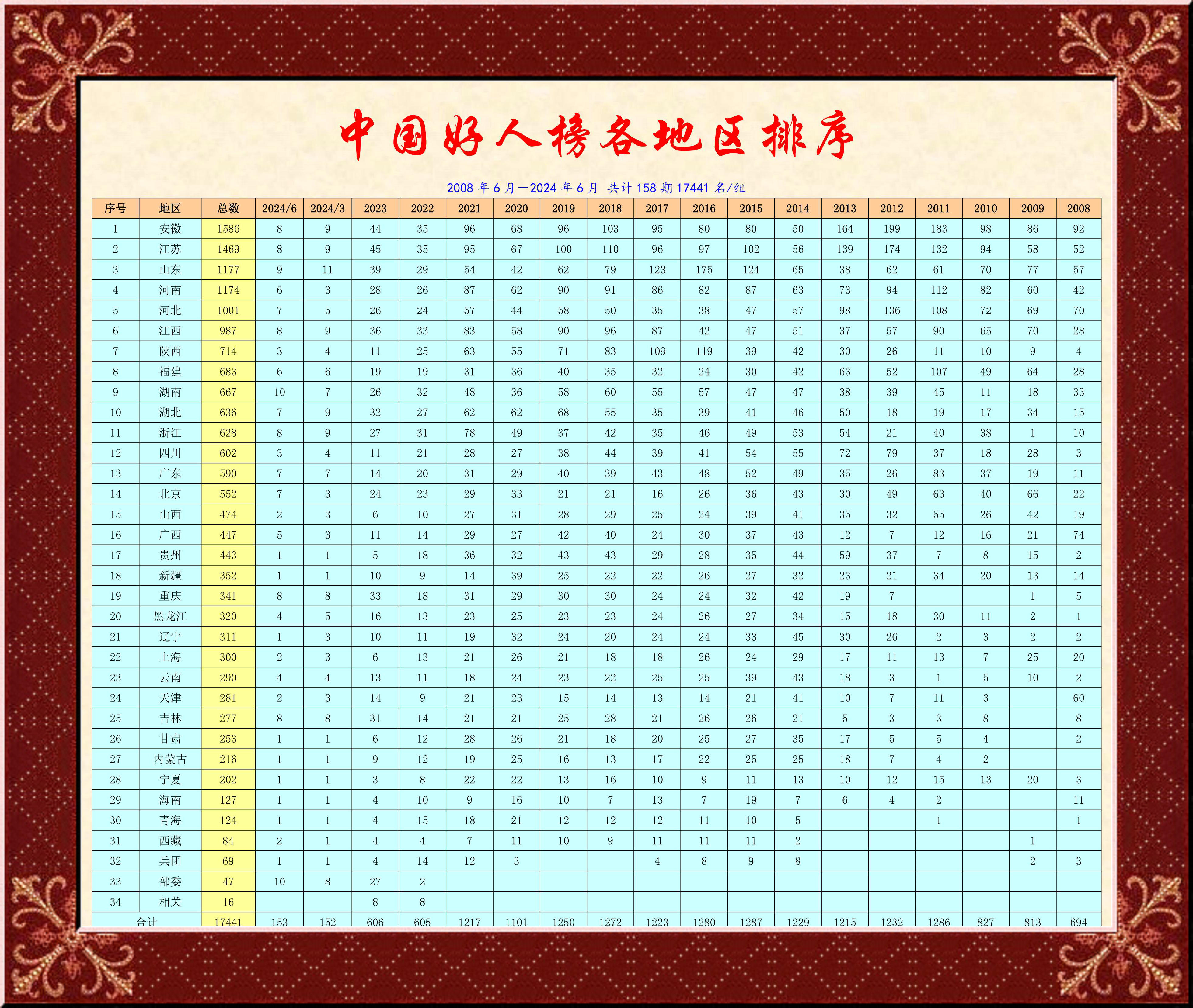 上榜好人中,有捐出百万元资助困难学子的教授伉俪李安昌、曹璎珞;有防汛巡查中为勇救落水者不幸牺牲的乡镇干部朱如新;有19年照顾植物人工友及其家人的车间钳工赵全喜;有与歹徒搏斗献出生命的27岁基层民警武霖;有照顾瘫痪亲人40余载的普通村妇何明兰……他们来自千千万万身边好人,用实际行动诠释了平凡英雄的可贵精神品质。