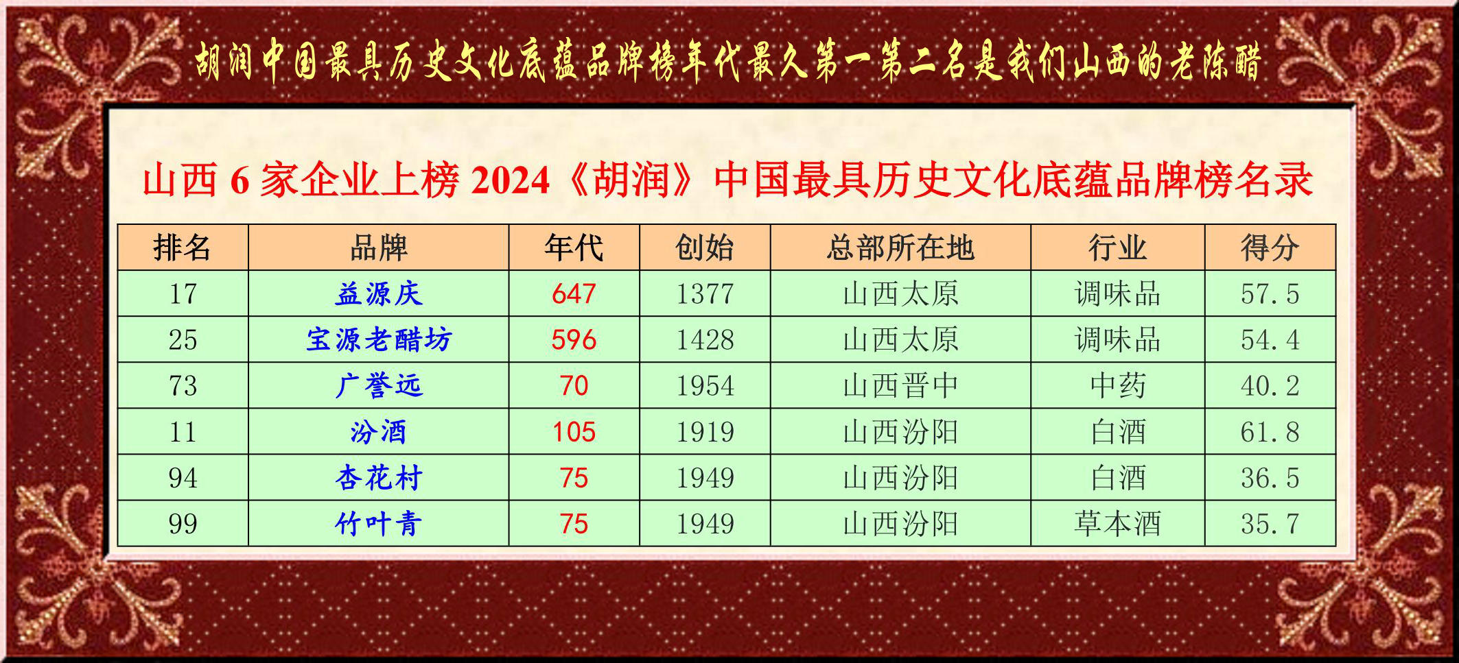 87 广誉远 1954 70 山西晋中 中药 73 40.2
