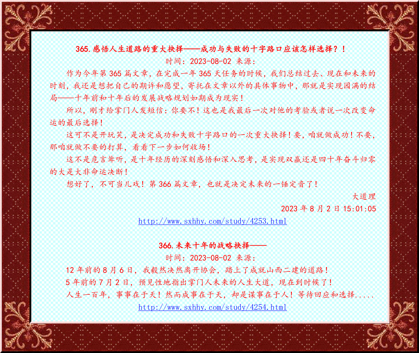 下面两篇文章,是前年8月2日同日所作,提醒掌门人应该如何解决眼前和今后矛盾的正确方法和措施,关系前途命运大是大非因果关系,既要果断,又要权衡利弊,两害相权取其轻,两利相权取其重,快刀斩乱麻以长远为决断才是大智慧!