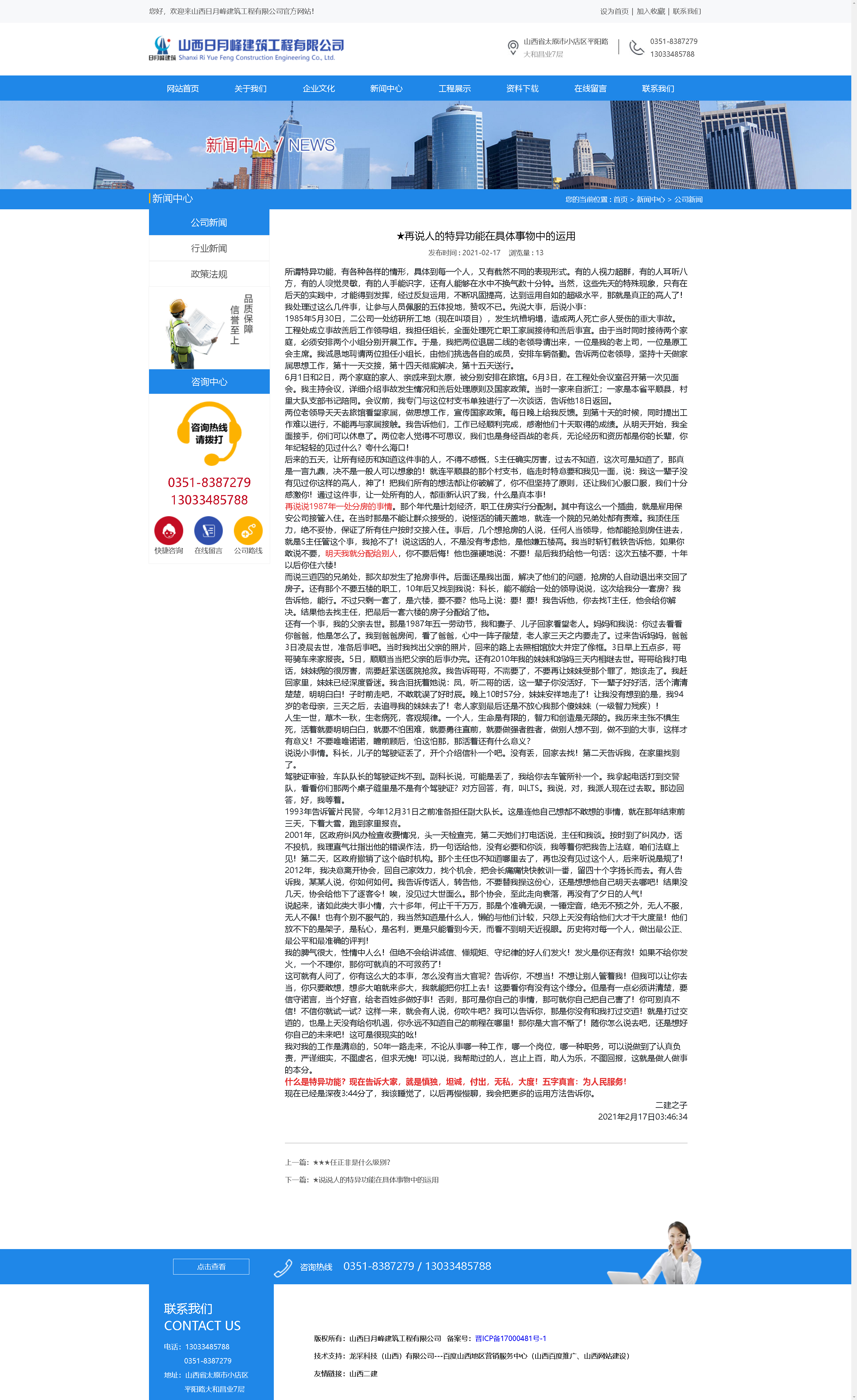 我为什么现在还在为我们的企业工作?就是因为我知道山西二建的过去、现在和未来!我在继续着上一任掌门人交给我的任务,那是一份光荣的任务,是一份企业历史上从未有过的艰巨任务。那就是实现山西二建的伟大理想——成就一个英雄的、光荣的、强大的百年山西二建!