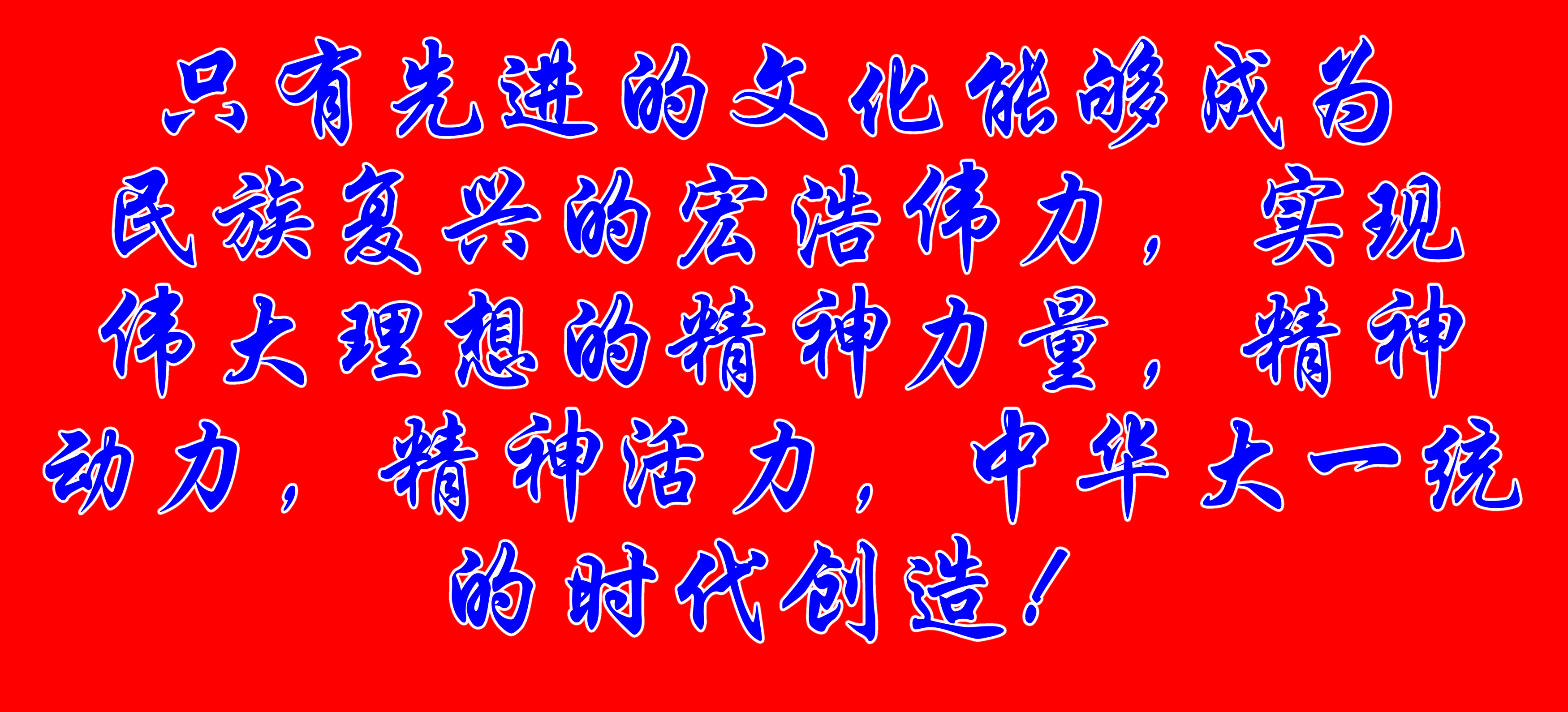 只有先进的文化能够成为民族复兴的宏浩伟力,实现伟大理想的精神力量,精神动力,精神活力,中华大一统的时代创造!
