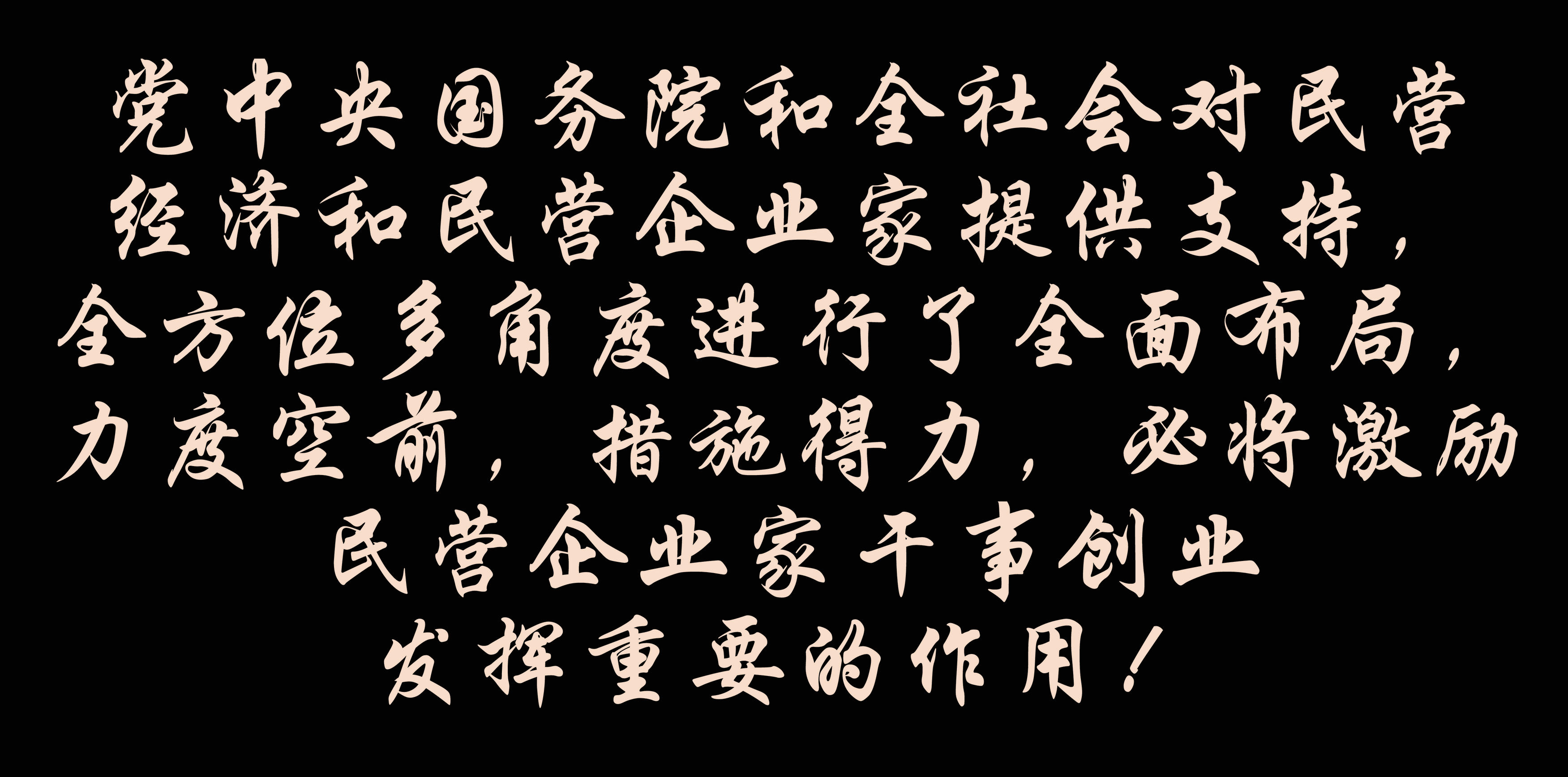 三十一条促进民营经济发展壮大的政策措施,既体现党中央和国务院对民营企业的关爱,也对民营经济健康发展提出要求,更对全社会对民营企业和民营企业家提供支持,全方位多角度进行了全面布局,力度空前,措施得力,必将对激励民营企业家干事创业发挥重要的作用!