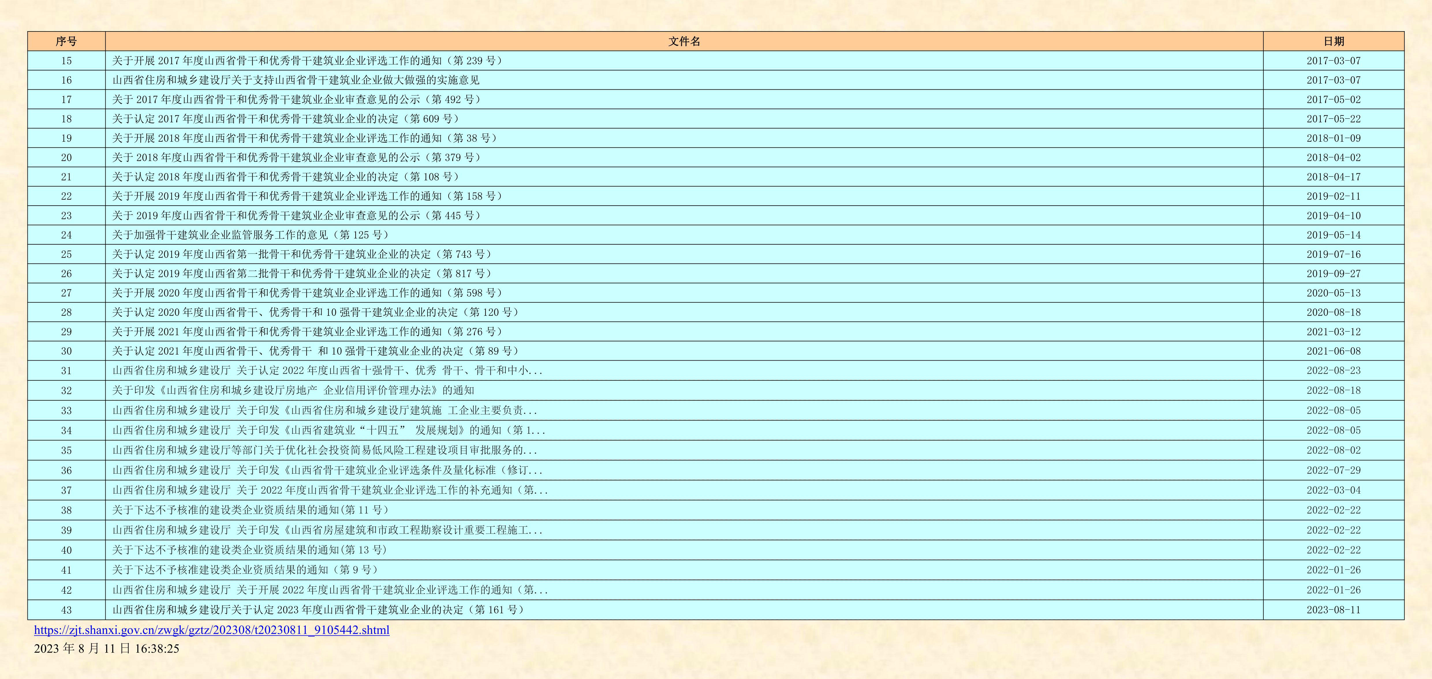 今天,省住建厅公布了2023年度山西省骨干建筑业企业名单。这是从2013年开始连续十一年第12次对全省建筑业企业的又一次检验和认定!