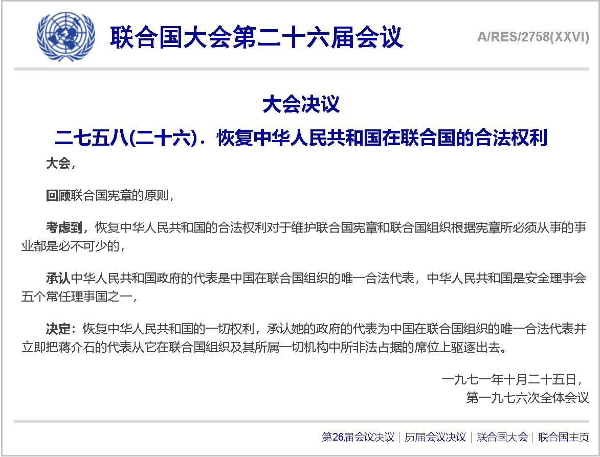 二七五八(二十六).恢复中华人民共和国在联合国的合法权利