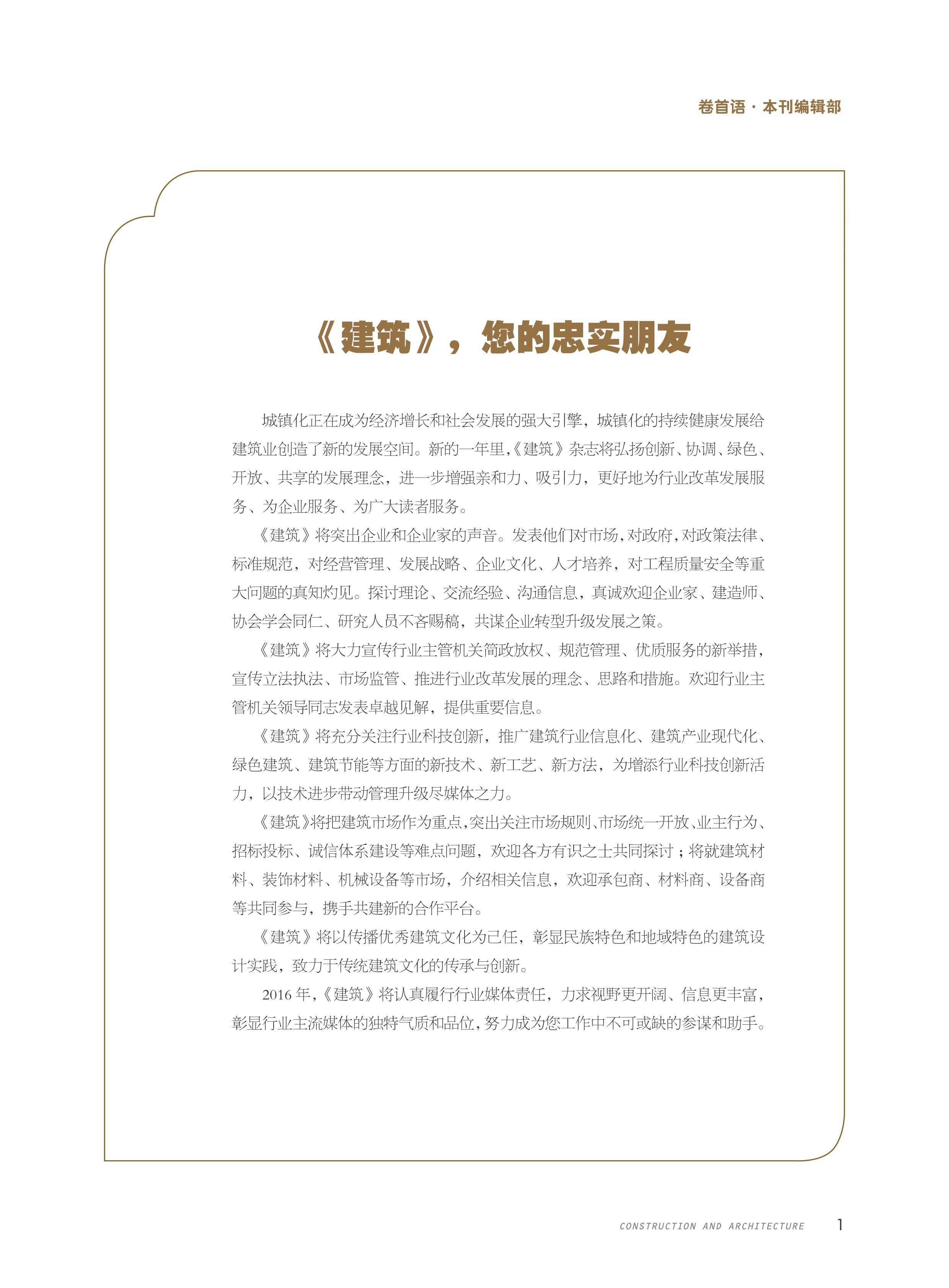祝福《建筑》为中华民族伟大复兴的宏伟事业做出更大的贡献!