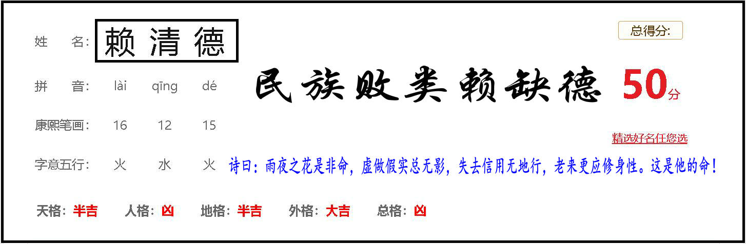 诗曰:雨夜之花是非命,虚做假实总无影,失去信用无地行,老来更应修身性。这是他的命!