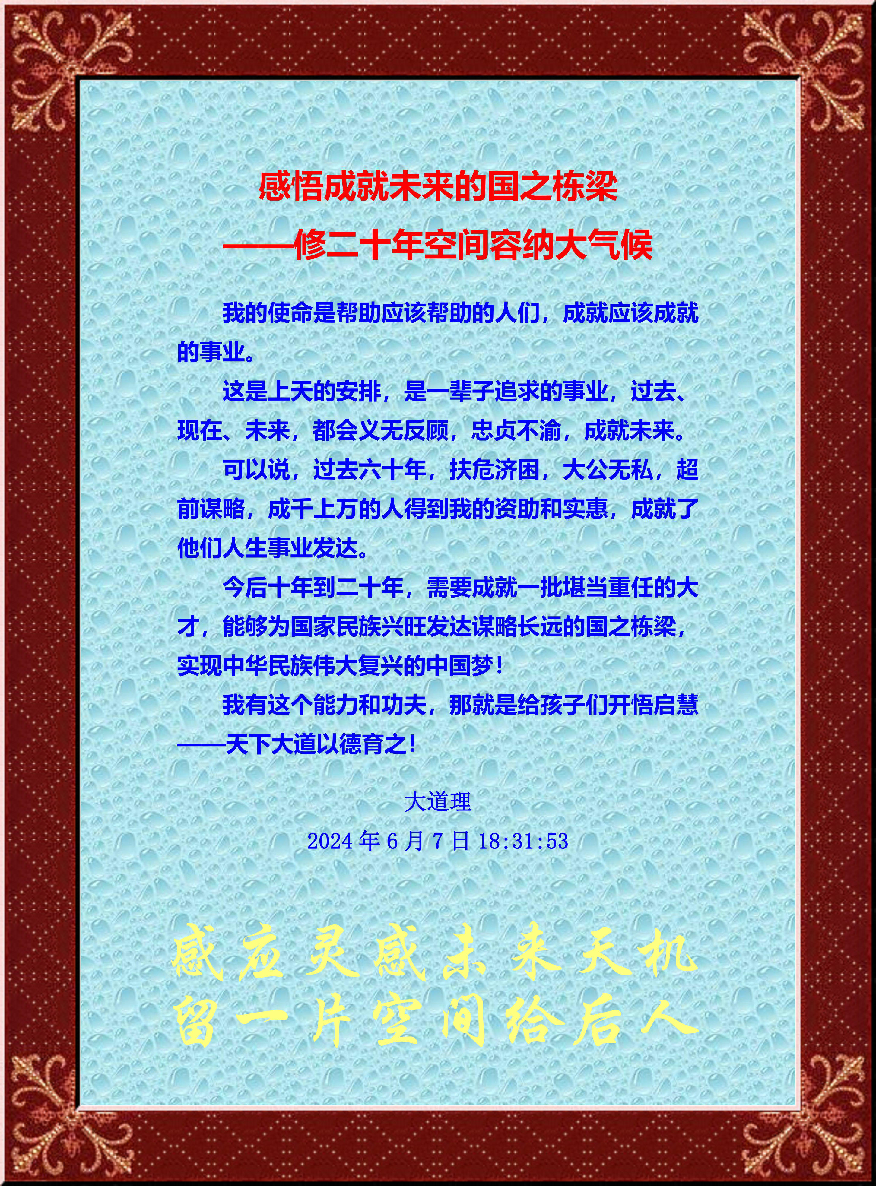 我有这个信心、能力和功夫,那就是给孩子们开悟启慧——天下大道以德育之!