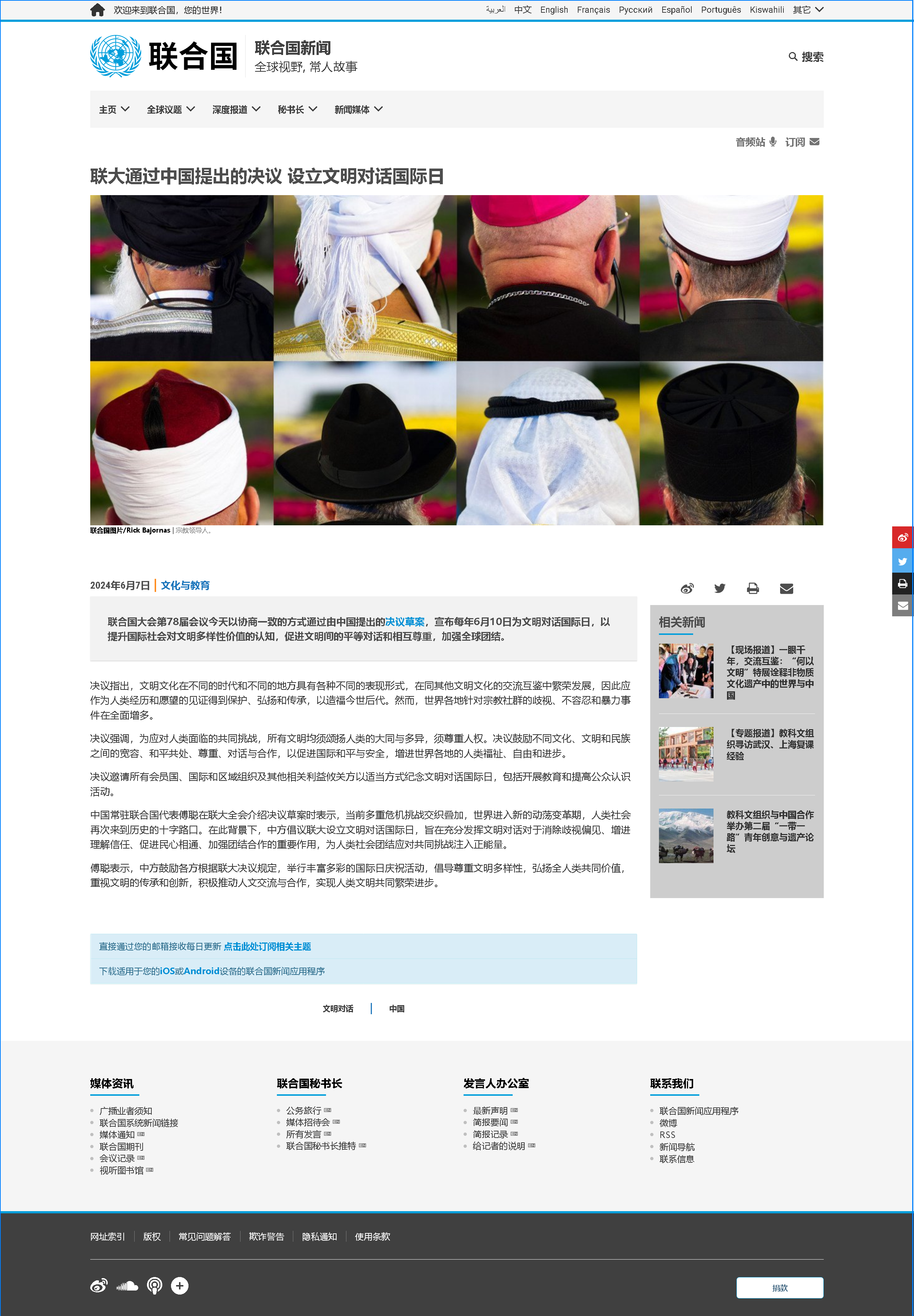联合国的使命是什么?大道和合,大德通天,天下一家,世界大同。
