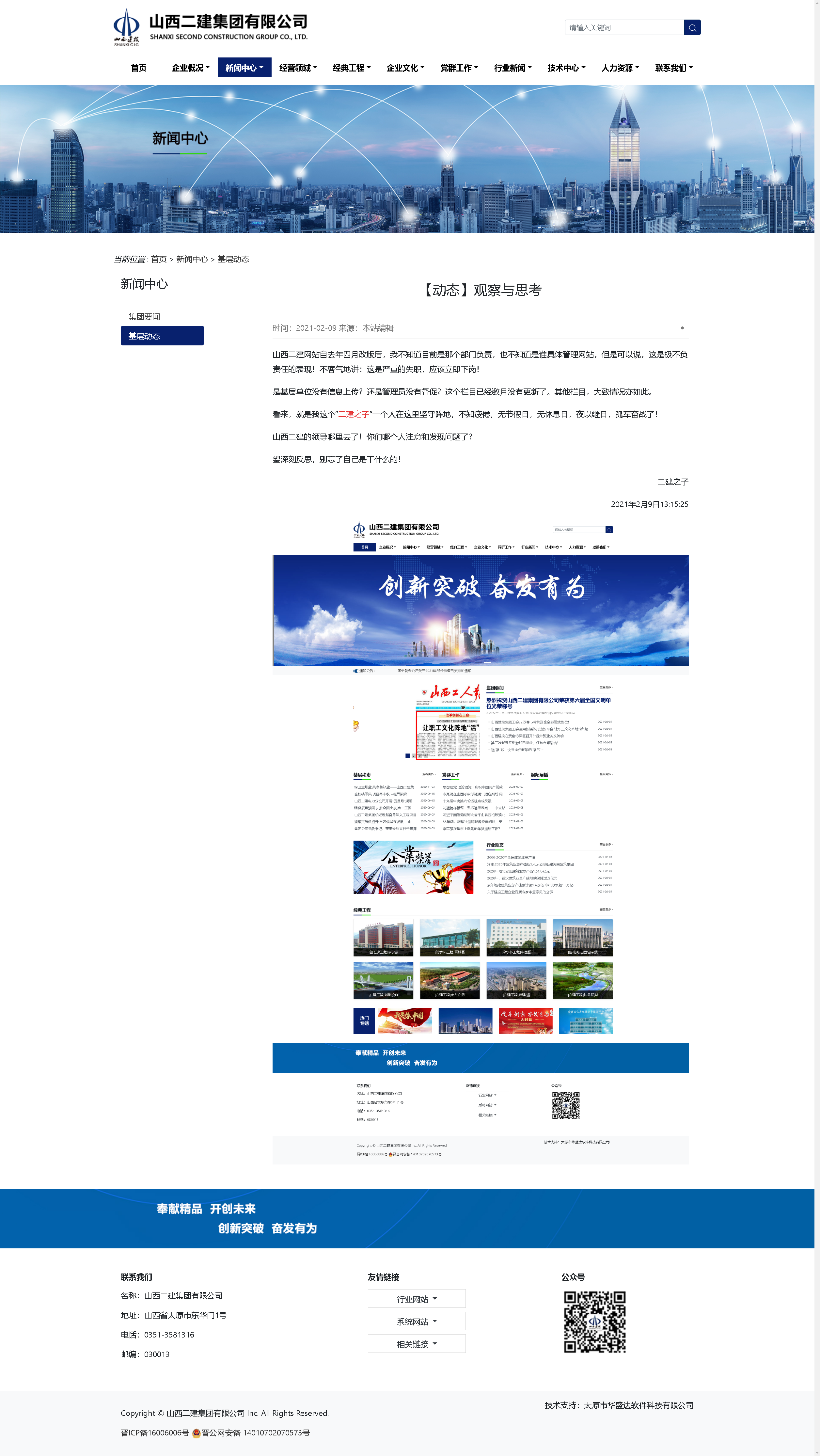 主动就不被动,就能够把工作做好、做细、做扎实,这正是我们山西二建企业文化的软实力,正是山西二建不断创新发展的精神内涵,正是山西二建不断获得进步和成功的力量源泉。每个人都把自己的工作作为对企业的使命和担当,都把自己的前途与企业发展命运与共,何愁我们的企业不强,不优,不大!