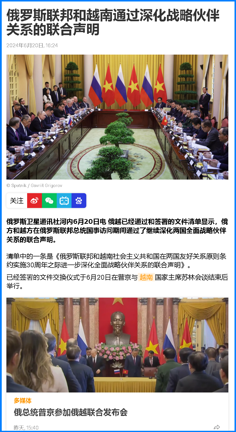 [共同关注]俄罗斯总统普京对越南进行国事访问